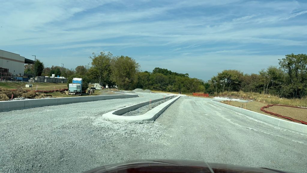 A new driveway is being built to the right of present driveway. There will be a roundabout with bus and car parking. The old driveway will remain until the last minute.