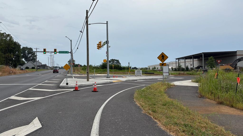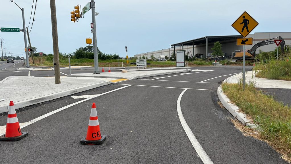This new intersection is where the driveway, which includes a lot of construction, goes back to Ebbert Spring. The road sign at the intersection says "Conservancy."
